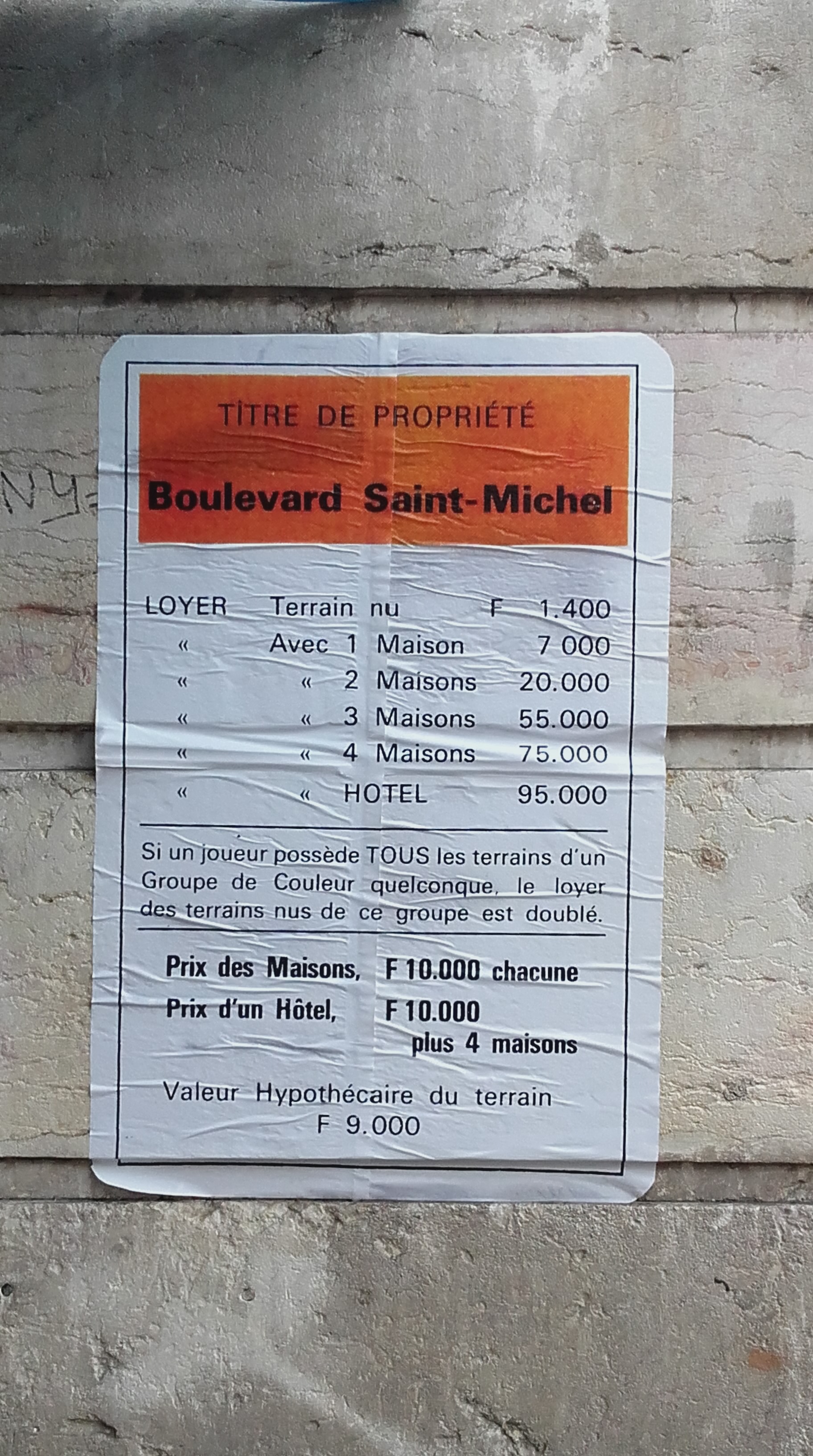 qu’elle fut pas notre surprise de découvrir, sur un mur, ce titre de propriété tiré du célèbre jeu de monopoly, faut avouer que c’est insolite.
