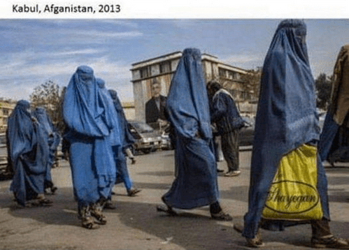 Les pensées des femmes occidentales sont dédiées avec empathie et compassion aux femmes de Kaboul, à leurs visages qui sous la dictature d’une idéologie religieuse sectaire, rétrograde et sexiste qui méprise le deuxième sexe, seront recouverts et invisibilisés, à leurs yeux qui seront éteints, à leur champs de vision réduit et même occulté, à leurs corps qui seront violés par des hommes tortionnaires et primaires incapables de contenir leurs impérieuses et bien égoïstes poussées de testostérone, à leurs âmes qui seront emprisonnées et niées…