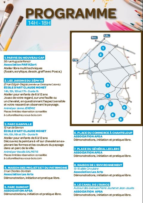 L’événement est organisé par la Ville avec le concours de l’école d’art Claude-Monet (EACM) et de trois associations : Les Arts, l’Apsa, PAR’AZart.