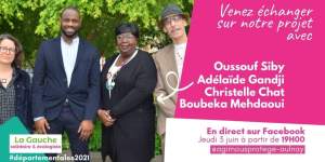 OUI, un plan d’urgence pour la jeunesse est nécessaire ! Nos candidats de gauche Oussouf Siby et Adélaïde Gandji aux départementales et Julien Bayou, Audrey Pulvar et Clémentine Autain aux régionales s’engagent à faire vivre cette priorité pour l’éducation, pour l’autonomisation, pour la mobilité, pour le logement.