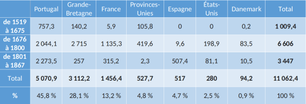 Nombre de captifs (en milliers) par pays ayant organisé leur déportation