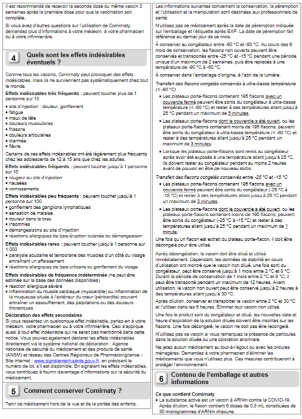 Malheureusement ces complications sont passées sous silence, elles ne remontent pas aux tutelles ou celles-ci ne veulent pas les voir. Ce drame humain sanitaire ne va faire qu’empirer avec la persistance de cette vaccination et la multiplication probable des doses. La mise au point d’un essai de vaccin anti H1N1 a été arrêté pour beaucoup moins de complications. Aucun des vaccins obligatoires n’a entrainé de telles complications. Actuellement les médecins voient plus de patients en consultations pour des complications du vaccin que du COVID lui-même. La balance bénéfice/risque n’est pas en faveur du « vaccin » dans cette population. Pourquoi voulez-vous encore rendre obligatoire un « remède » plus dangereux que la maladie chez les personnes sans risques !