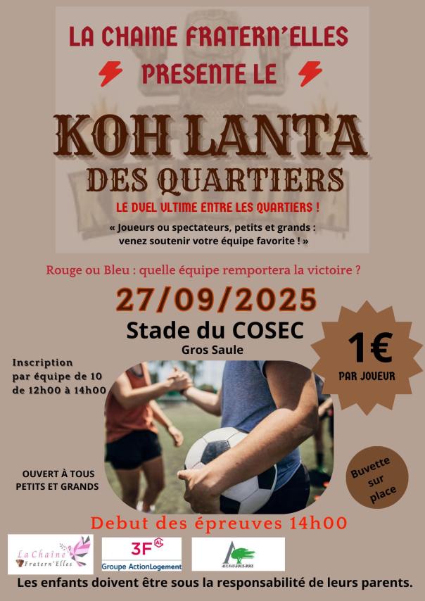 Et si les quartiers d’Aulnay-sous-Bois s’affrontaient au travers le sport ? Il y aura un grand évènement Koh Lanta des quartier au COSEC du Gros Saule.