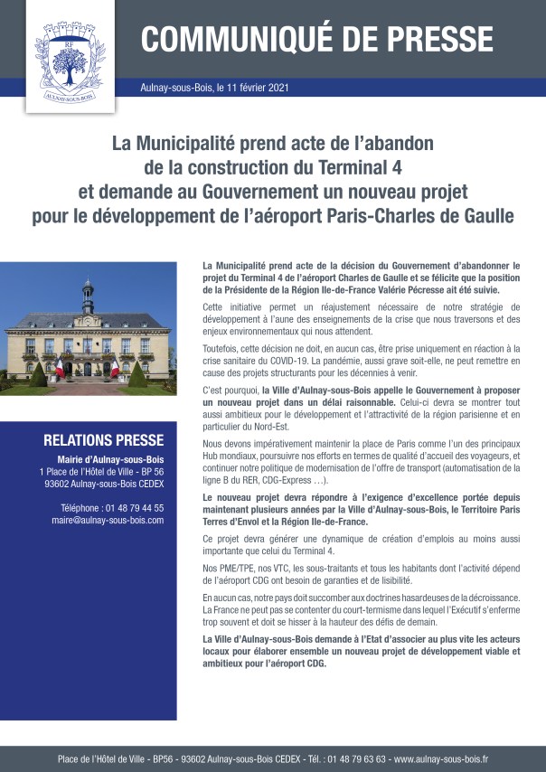 La municipalité d’Aulnay-sous-Bois a pris acte de l’arrêt du projet titanesque de l’expansion de l’aéroport Charles de Gaulle avec la création avortée du terminal T4. Cependant, la municipalité d’Aulnay espère que des projets ambitions verront le jour et que le CDG Express aboutira dans les meilleurs délais pour permettre à Paris de garder sa position de hub mondial.
