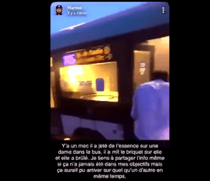 La victime, âgée de 54 ans, a été brûlée au niveau du visage, du cuir chevelu et du cou, mais ses jours ne sont pas en danger. C’est son compagnon ainsi que le chauffeur du bus qui l’ont sauvée des flammes, le chauffeur ayant pu utiliser un extincteur.