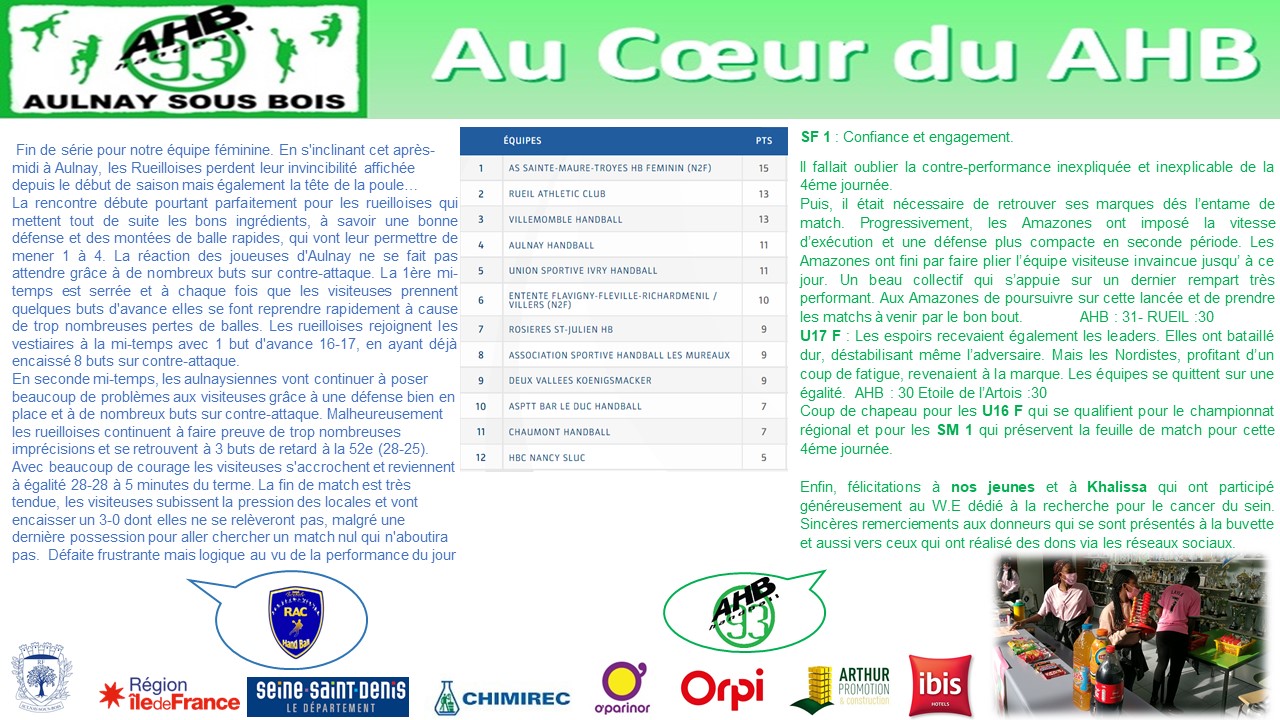 De chouettes rencontres avec des issues favorables, avec en plus des gestes de soutien au profit de la ligue pour la recherche contre la cancer du sein, que demandez de plus ! Le club du Aulnay Handball respire après la contre-performance de la précédente journée de championnat.