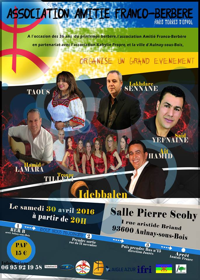 Grande fête franco-berbère le samedi 30 avril à Aulnay-sous-Bois