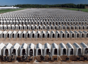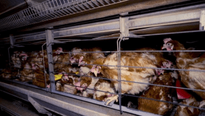 Entassées et confinées dans plusieurs centaines de cages grillagées, des milliers de poules n’ ont pas la possibilité d’étendre leurs ailes, ni de s’éloigner les unes des autres en raison de l’exigüité des cages. Serrées les unes contre les autres, déplumées, se piétinant, les poules sont agressives à cause de leurs conditions de détention. Certaines ne survivent pas et leurs cadavres se décomposent au milieu des autres…