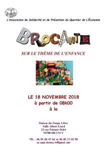 L’ASPE de Drancy organise une brocante dimanche 18 novembre 2018 à la salle Albert LIARD à la Maison du Temps Libre (12 rue Etienne DOLET). Début de l’exposition à 8h.