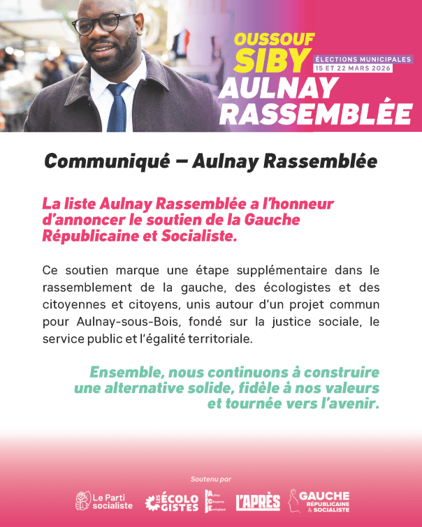 Source : communiqué Oussouf Siby, candidat aux municipales 2026 à Aulnay-sous-Bois