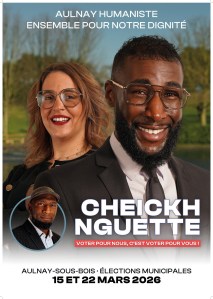 Reste Cheickh Nguette, candidat de la Démocratie Participative, soutenu par le révolutionnaire Hadama Traoré. Si Démocratie Participative, avec le soutien du mouvement LREEM, a beaucoup travaillé sur le terrain, l’absence de support d’un appareil politique, indispensable pour une grande ville comme Aulnay-sous-Bois, le pénalisera. A quelle position Cheickh Nguette arrivera-t-il ? S’il est derrière l’un des candidats de Gauche, apportera-t-il son soutien lors de l’éventuel second tour ? Et l’inverse sera-t-il vrai ?