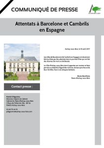 Vous trouverez en cliquant sur l’image ci-contre le communiqué de Bruno Beschizza, Maire d’Aulnay-sous-Bois, concernant les attentats commis en Espagne hier.
