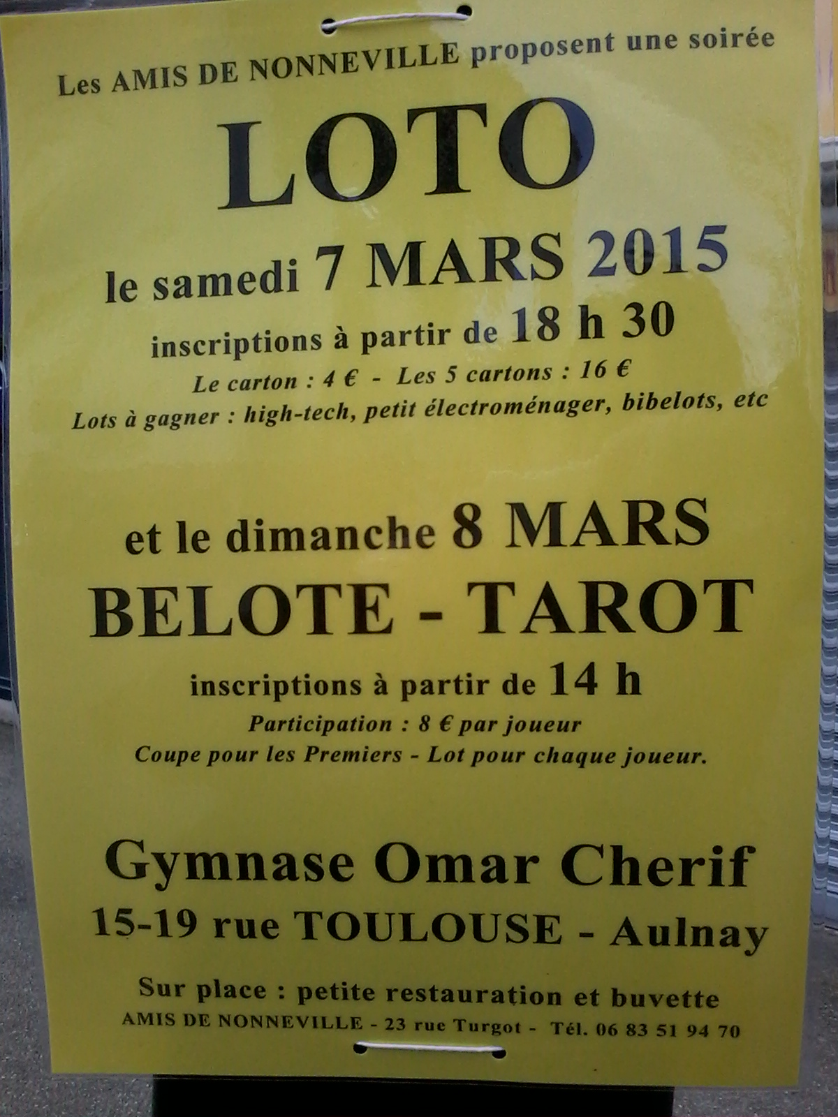 Aulnay-sous-Bois : Loto et Belote/Tarot des amis de Nonneville ce week-end