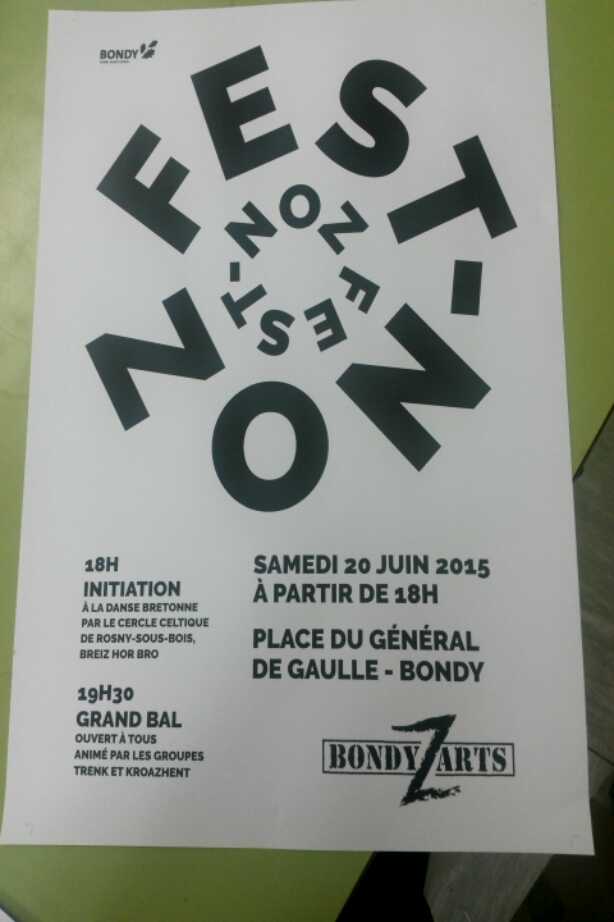 La ville de Bondy organise une soirée fest-noz en plein air le samedi 20 juin 2015.