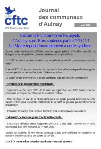 Source : Syndicat CFTC – FPT Aulnay-sous-Bois / 1, Boulevard Félix Faure 93600 Aulnay-sous-Bois / Tel. 01 48 66 73 48 / Courriel : cftc93600@outlook.fr