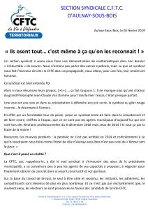Si on écoute « le syndical des amis du patron » nous ferions de la politique ? Pourtant c’est bien la CFTC qui s’adresse aux aulnaysiens et aulnaysiennes, en opposant les agents Communaux et la population !