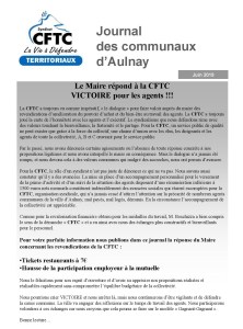 Le Maire d’Aulnay-sous-Bois répond à la CFTC, VICTOIRE pour les agents!!!