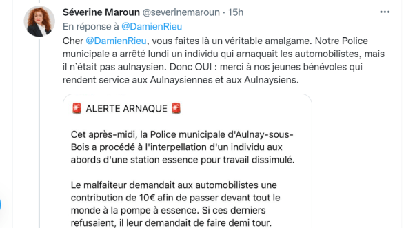 Cette attaque de M. Rieu a fait réagir Séverine Maroun, première adjointe à Aulnay-sous-Bois, qui félicite l’action de ces jeunes pour réguler la circulation :