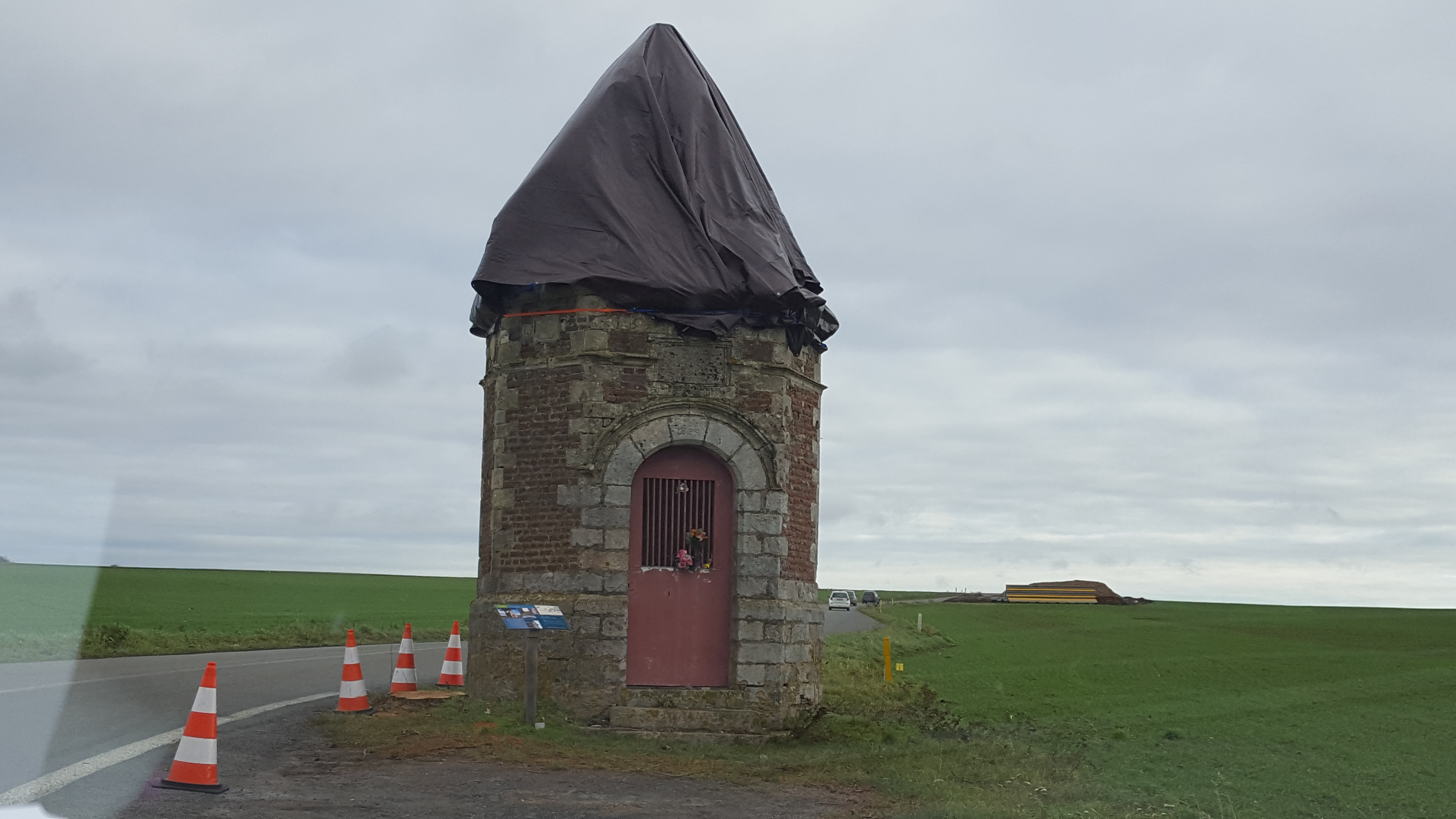 Sortons un peu de la Seine-Saint-Denis et parlons un faisons un zoom un instant sur une petite ville du Pas-de-Calais située non loin d’Arras, Etrun. Celles et ceux qui empruntent l’ancienne route nationale 39 on certainement remarqué la présence d’une petite chapelle avec son arbre qui la protège, au niveau d’Etrun. Il s’agit de la chapelle votive Notre-Dame-de-Pitié, construite au 17ème siècle.