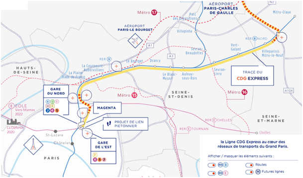 Comme la liaison CDG Express est promise pour les JOP 2024 , que le temps est compté et que les expropriations seront exclues ,il faudra modifier son tracé de façon à éviter le plus possible les acquisitions foncières, notamment à chaque extrémité : Paris et Mitry-Mory où se situent les sections nouvelles de la liaison ferroviaire à construire sur des emprises privées. La concertation publique sur le terminal 4 de Roissy CDG – lui-aussi promis pour les JOP 2024 – offrira l’opportunité de réexaminer le dossier : https://www.debatpublic.fr/preparation-concertation-prealable-projet-construction-du-nouveau-terminal-passagers-terminal-4-au