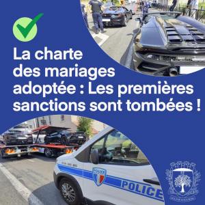 Lors de certains mariages, des comportements dangereux et irresponsables sont observés sur nos voiries, notamment des rodéos motorisés mettant en danger la sécurité des usagers et perturbant la tranquillité publique. Ces actes, sont passible de lourdes sanctions allant jusqu’à un an d’emprisonnement et 15 000 € d’amende.
