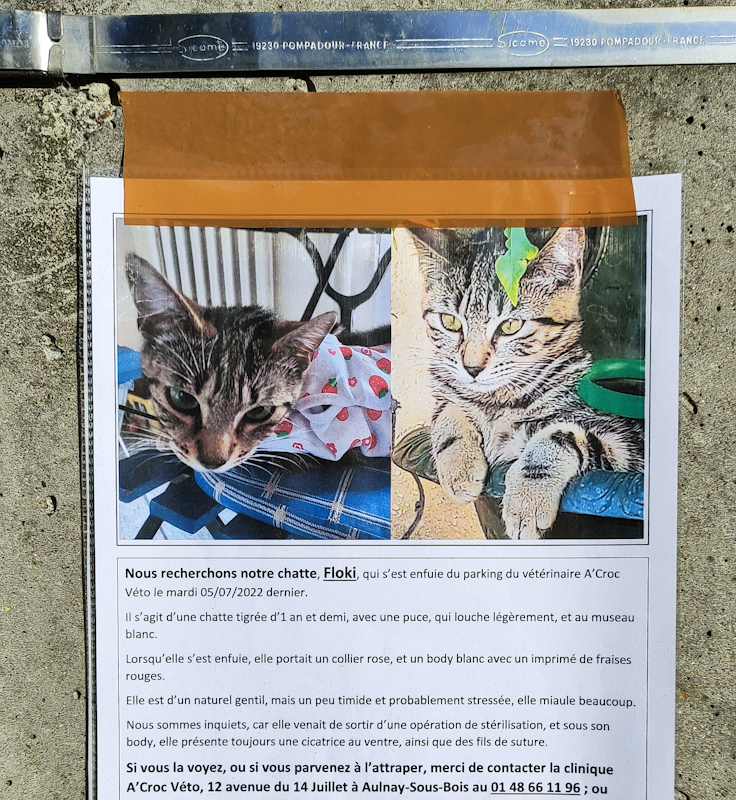 Un chat perdu à Aulnay-sous-Bois
