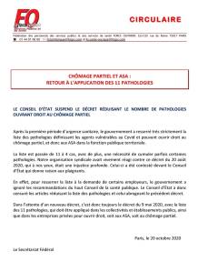 Force Ouvrière Communaux d’Aulnay-sous-Bois écrit au Maire concernant le décret associant pathologie et chômage partiel