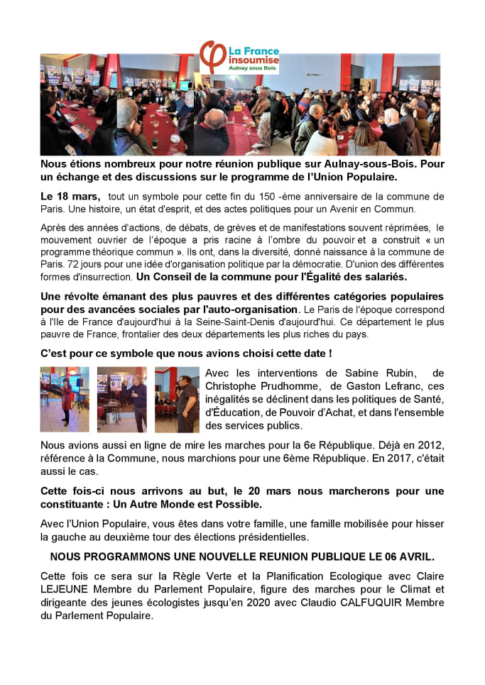 Quel dommage que la ville d’Aulnay ne commémore pas les 150 ans de la Commune de Paris ! Il est vrai que la Commune est aux antipodes de l’autoritarisme napoléonien qui inspire davantage l’actuelle majorité.