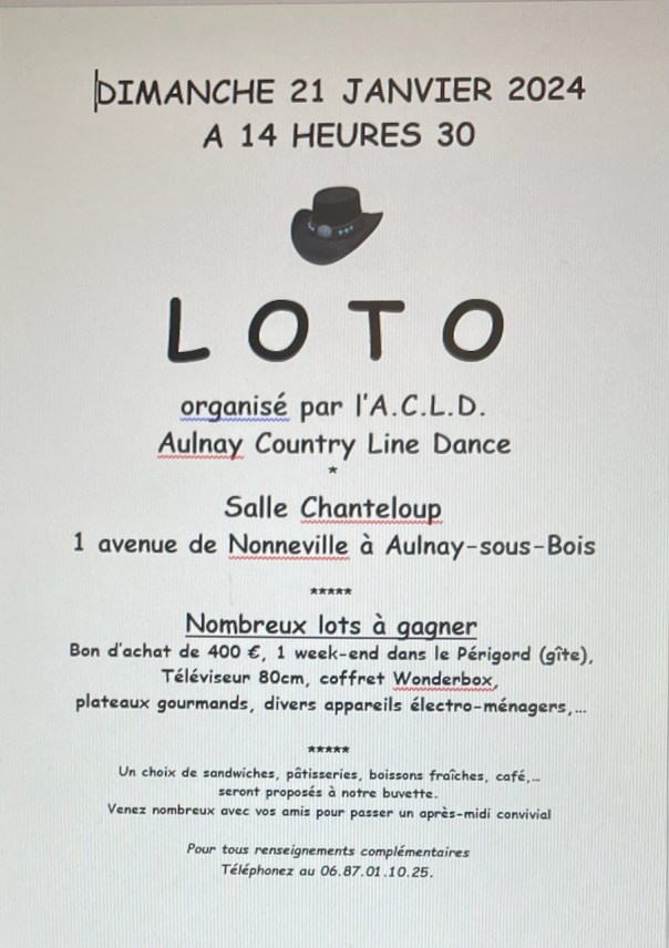 Renseignements: Aulnay country line dance, 64 rue Turgot, 93600 Aulnay-Sous-Bois