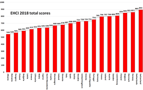 Parmi les États membres de l’UE, l’Allemagne (11,7 %) et la France (11,1 %) affichaient les dépenses de santé les plus élevées par rapport au PIB en 2019. Pourtant, en termes de qualité de prise en charge (indicateur composite EHCI – Euro Health Consumer Index) en Europe, la France n’est que 11 ème.