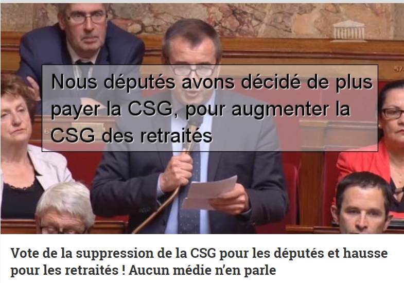 Les députés se votent donc une baisse de 467,20€ et les retraités vont voir leur CSG augmenter de près de 300€ en moyenne