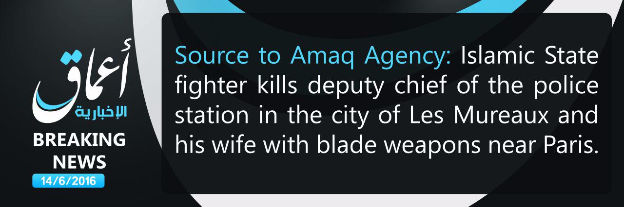 L’Etat Islamique revendique le meurtre d’un policier et de sa compagne à Magnanville dans les Yvelines