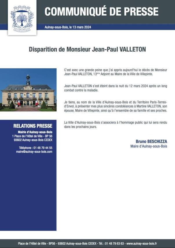 Hommage à Jean-Louis Chaussat, une personnalité locale à Aulnay-sous-Bois qui nous a quitté récemment