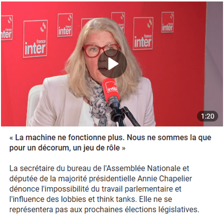 Le poids écrasant et insupportable des lobbies sur le travail parlementaire dénoncé par Annie Chapelier