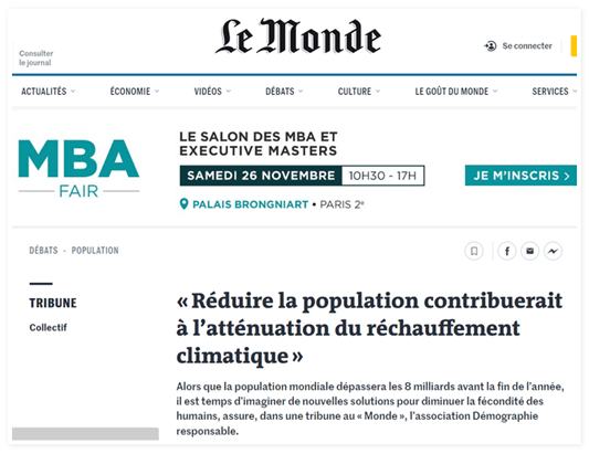 Le journal Le Monde envisagerait-il la dépopulation comme une solution acceptable ?