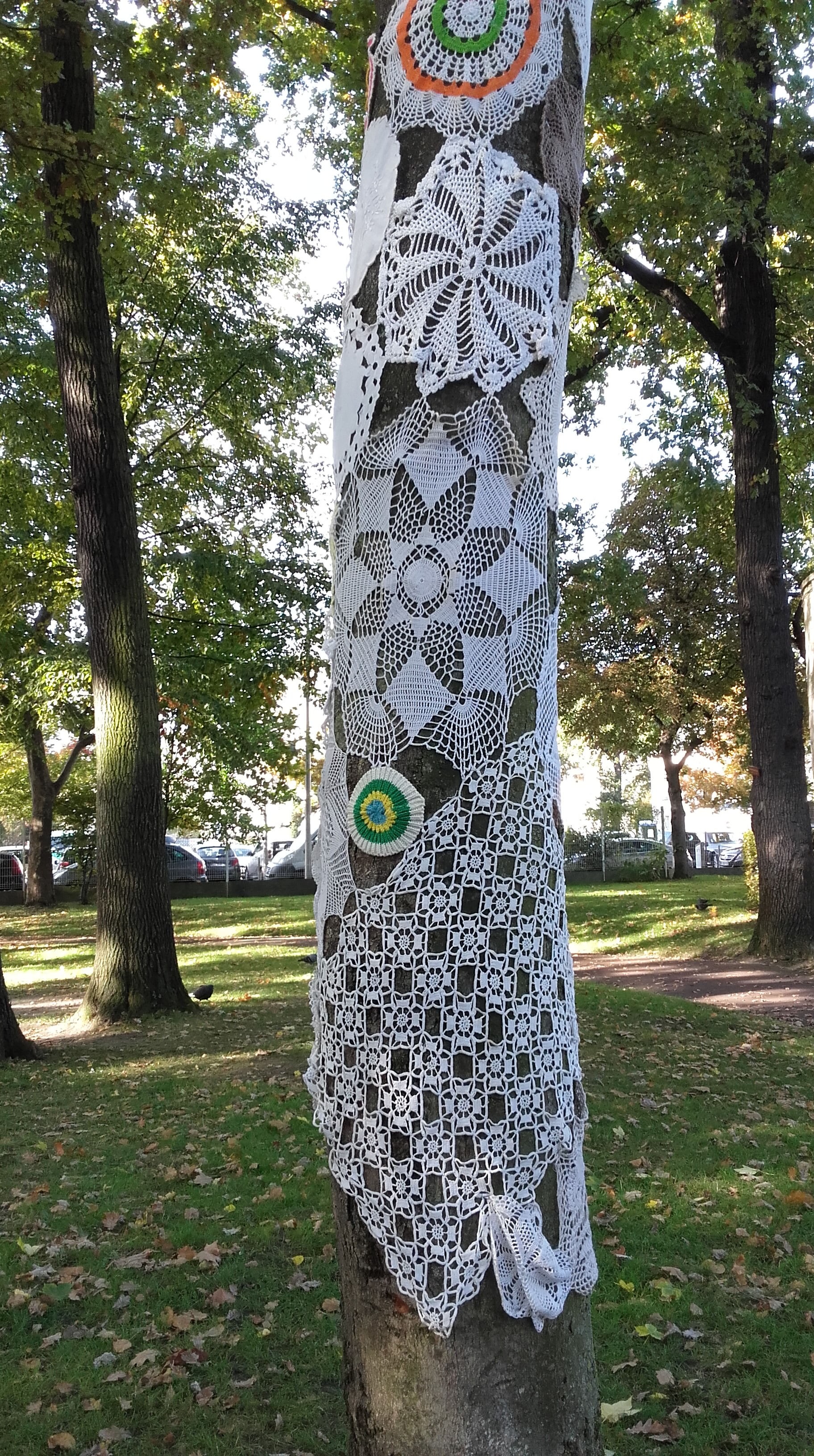 En traversant le parc Dumont, ce dimanche matin, la rédaction à remarqué des œuvres d’art datant de la fête de l’arbre, qui sont restées sur les arbres, volontairement ou non, nous l’ignorons, toujours est il, que ça donne un côté, « exposition en plein air », plutôt colorée et sympathique.