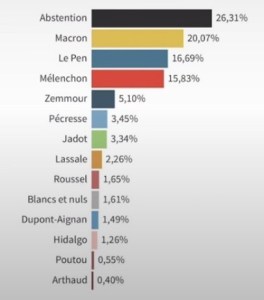Ce viol caractérisé de la Démocratie qui aboutit systématiquement à ce cul de sac ultra – libérale – autoritaire dont les Français ne veulent pas qu’ils votent pour la droite ou pour la gauche provoque inévitablement l’abstention et le rejet des partis dits de gouvernement. Les résultats de ce premier tour de la Présidentielle l’illustrent parfaitement.