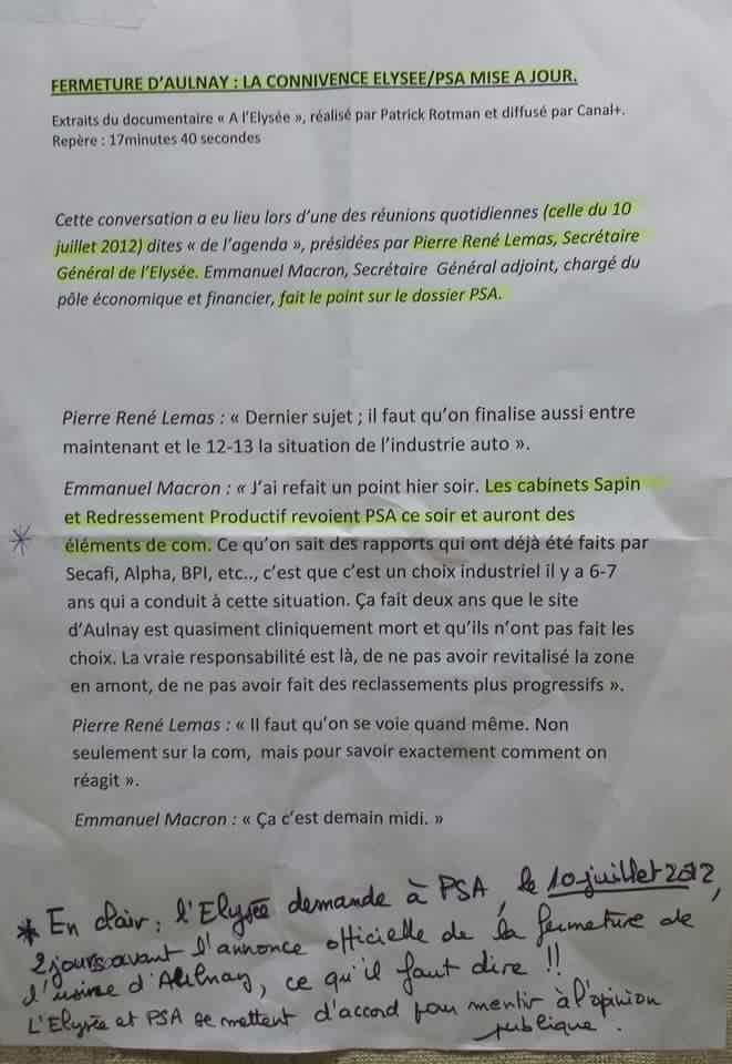 L’état et Emmanuel Macron connaissaient-ils le plan de fermeture de PSA Aulnay-sous-Bois avant l’annonce officielle ?