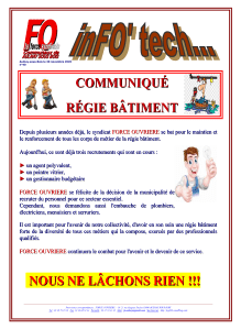 Depuis plusieurs années déjà, le syndicat FORCE OUVRIERE se bat pour le maintien et le renforcement de tous les corps de métier de la régie bâtiment.