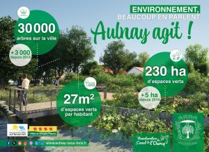 La Ville d’Aulnay-sous-Bois est engagée en faveur de l’environnement, la renaturation du canal de l’Ourcq va accentuer cet engagement. L’attention portée à l’environnement se traduit aussi par la volonté de privilégier de nouvelles sources d’énergie, propres et décarbonées, économes en énergie et la plantation de nombreux arbres à travers la ville notamment dans le cadre du projet de coulée verte qui reliera à terme le coeur du Vieux-Pays au stade de Moulin-Neuf.