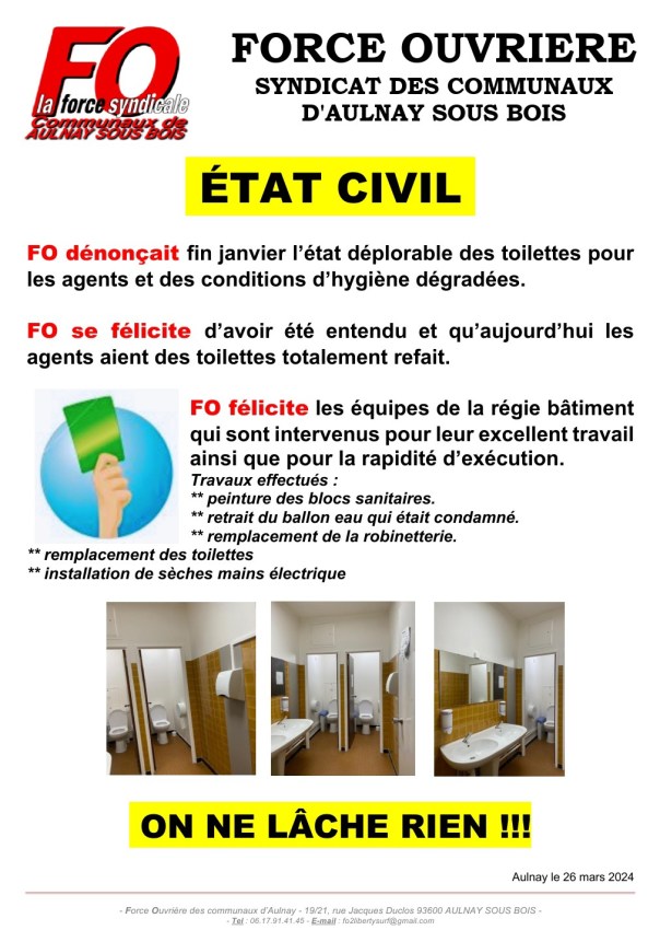 Préavis de grève le mercredi 09 janvier 2019 chez les Agents du service de l’Etat Civil d’Aulnay-sous-Bois