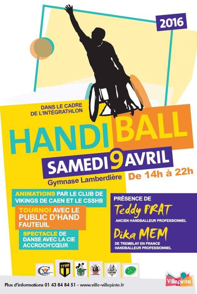 Dans le cadre de l’intégrathlon, un tournoi d’Handiball est organisé à Villepinte le 9 avril prochain, de 14h00 à 22h00.