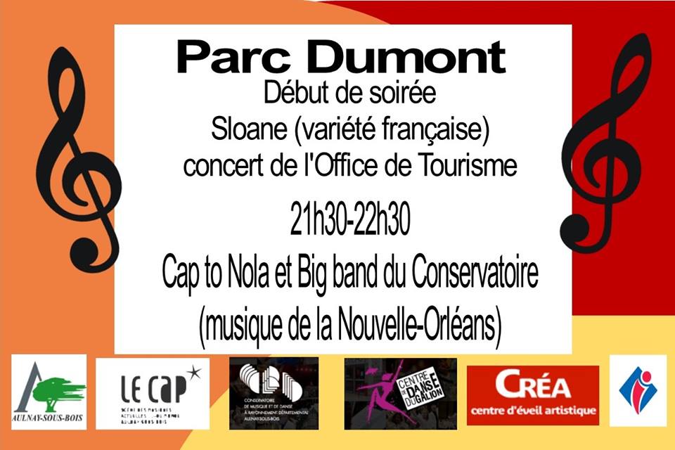 - 19h00 à 20h30, Parc Gainville (Rue de Sevran) : Concert de l’ensemble de clarinettes du Conservatoire de musique et de danse d’Aulnay, Concert du Cap steel orchestra