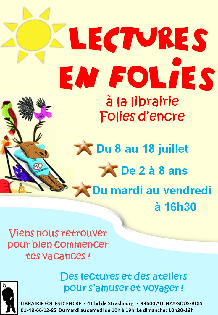 C’est LECTURES EN FOLIE chez Folies d’Encre, célèbre librairie d’Aulnay-sous-Bois, pendant les vacances de février.