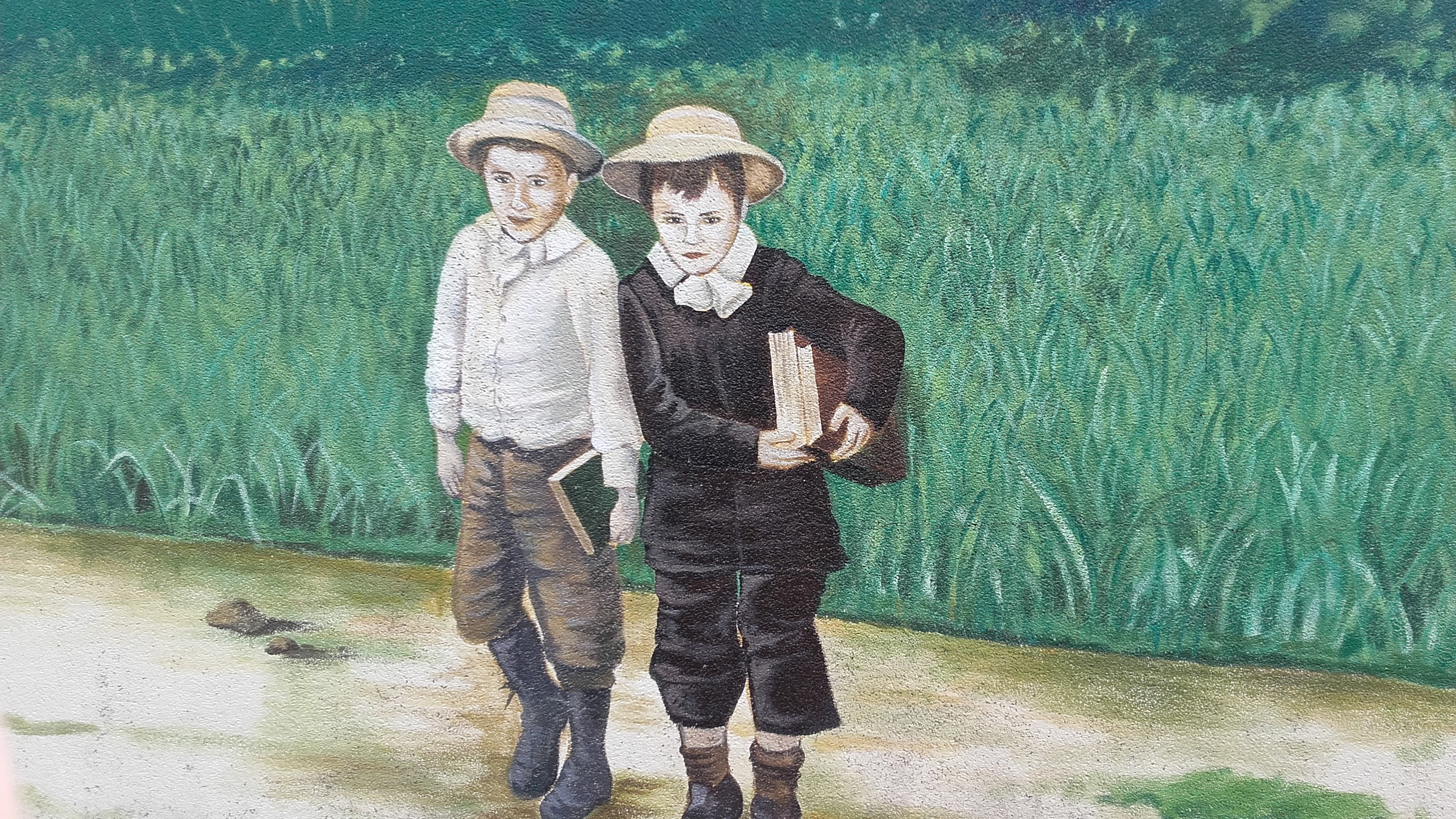 Cette façade du collège, voisine de l’hôpital de l’est parisien, offre actuellement un spectacle extrêmement déprimant ; tout décor ne peut qu’apporter une amélioration du cadre de vie. Il s’agirait ici d’agrandissements de cartes postales anciennes de la même rue, pleines de charme et de nostalgie.
