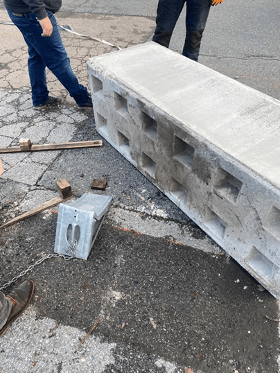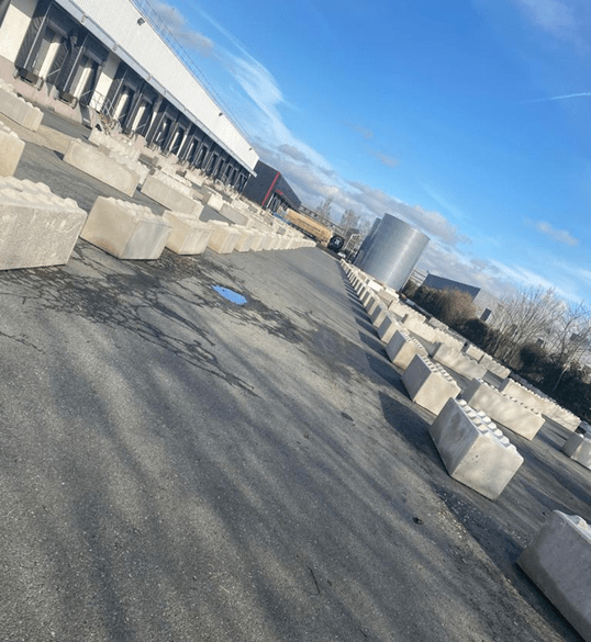Là, nous nous sommes installés sur un parking sans activité à côté de l’Usine Center, encombré de 200 blocs de béton d’environ une tonne, une tonne cinq chacun, probablement destinés à empêcher des GDV de s’installer.