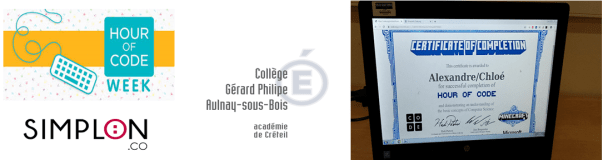Les élèves ont obtenu des « diplômes d’initiation au code », « Certificate of Completion » et « Certificats de participation au EU WeekCode 2019 ». Ils sont contents et nous sommes fiers d’eux.