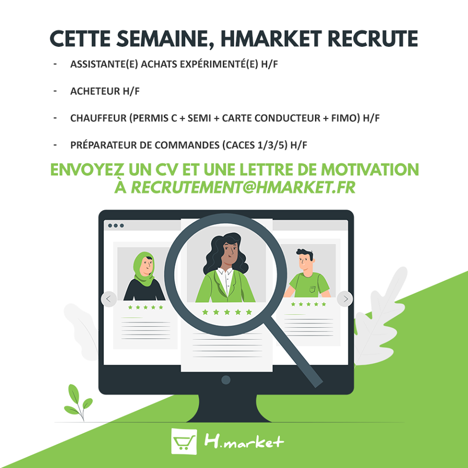 CV et lettre de motivation à envoyer à recrutement@hmarket.fr. Plus d’information en cliquant sur l’image ci-contre.