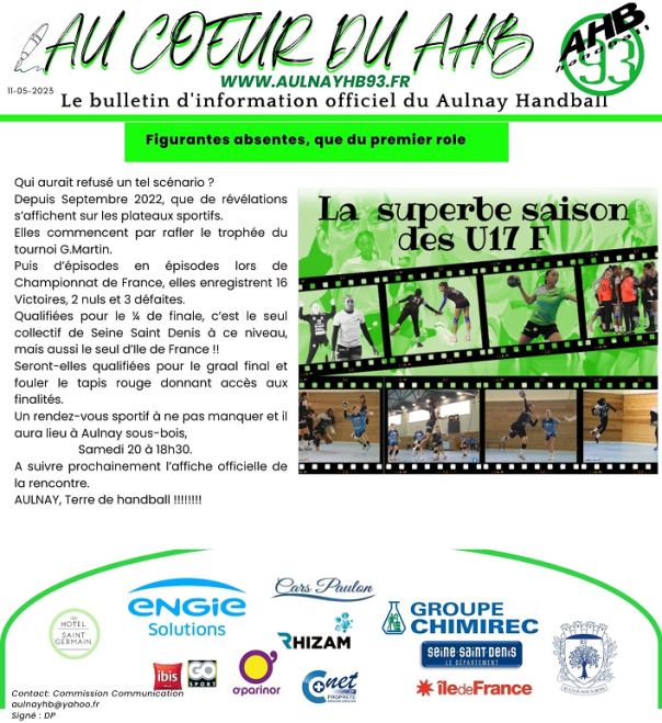 Les U17 du Aulnay Handball on rendez-vous ce samedi pour la demi-finale du Championnat de France