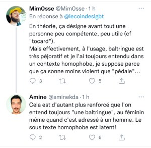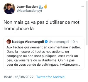 En effet madame la nouvelle députée a suscité l’émoi des internautes pour avoir insulté des adversaires politiques de « baltringues », une insulte homophobe. Plusieurs dizaines de réactions sont sorties dans les commentaires, et une association de défense des droits LGBT nationale a même réagit.